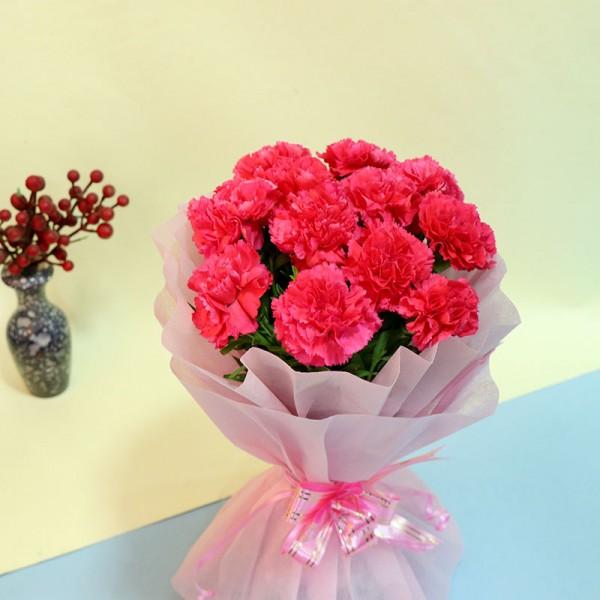 If you want to show gratitude towards someone, then, you must greet them with this bunch of 12 Pink Carnations, wrapped in Cellophane paper. They will be more than elated on getting your subtle message.