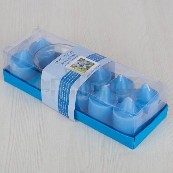- 8 Blue Berry Scented Pillar Candles(each candle is of 2 inches height)