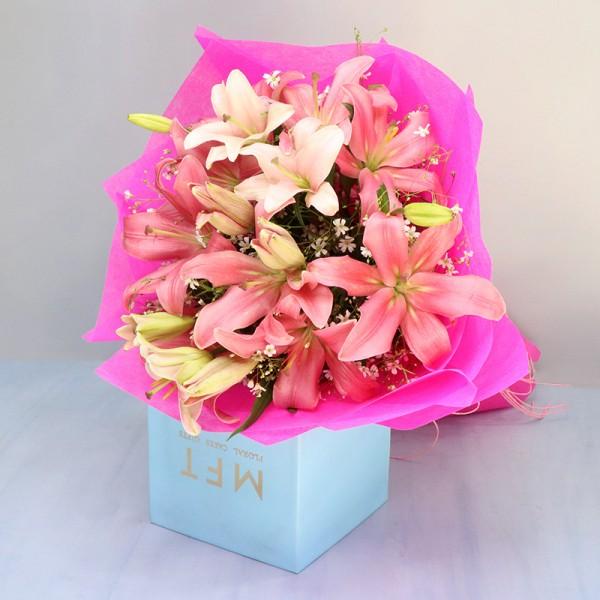 With Pink Oriental Lilies, expressing care and warmth gets simpler. Send this bunch of 5 dark Pink Oriental Lilies, decorated in a bouquet, to someone on a special occasion.