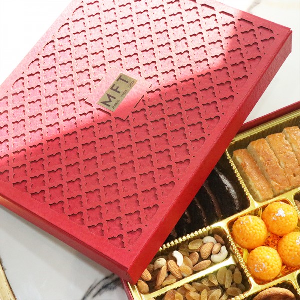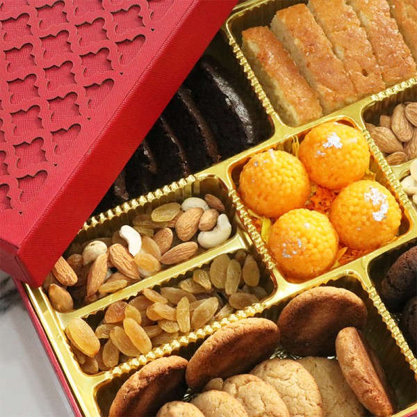 Celebrate the spirit of Diwali with our Deluxe Diwali Hamper, a curated collection of sweet and savory treats. This thoughtfully crafted hamper includes delicious cookies, rich tea cakes, premium dry fruits, and uniquely designed ladoo-shaped candles to brighten your home. Perfect for gifting or enhancing your own Diwali celebrations, this hamper brings a touch of luxury and tradition to the festive season. Share the joy of Diwali with loved ones and create lasting memories with this festive treat.