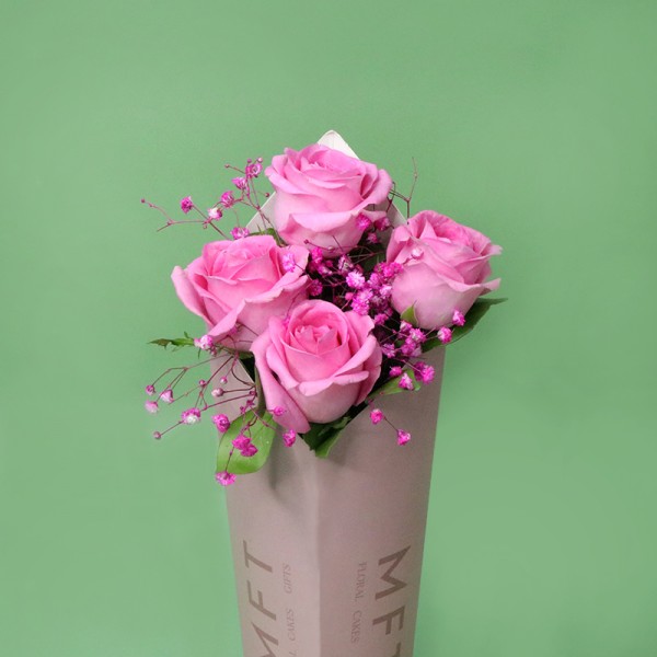 Celebrate beauty and elegance with our Pink Rose Sleeve Arrangement. This gorgeous arrangement features fresh, vibrant pink roses, thoughtfully arranged in a stylish handpouch. The compact yet sophisticated design makes it an ideal gift for birthdays, anniversaries, or any special occasion. The soft pink hues of the roses symbolize admiration and gratitude, making this handpouch a perfect expression of love and appreciation.Whether for a loved one or a thoughtful gesture to brighten someone’s day, our Handpouch with Pink Roses brings joy and charm to any setting. Order today and gift this beautiful, modern floral arrangement in a chic handpouch that will delight anyone who receives it.