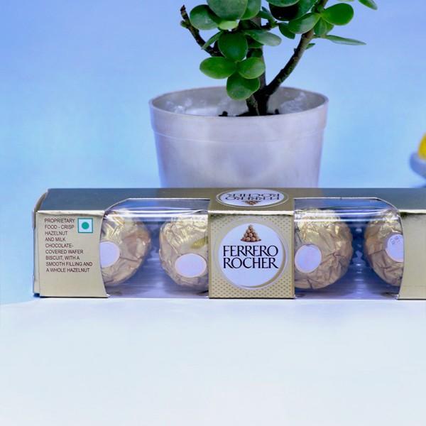 Tremendous jade plants are mandatory for special occasions to surprise your dear ones. To make the day even more delectable get the 4 piece ferrero rocher that renders a heavenly delight. This plant stands for 4 inches that will stand out of thr crowd in the garden.