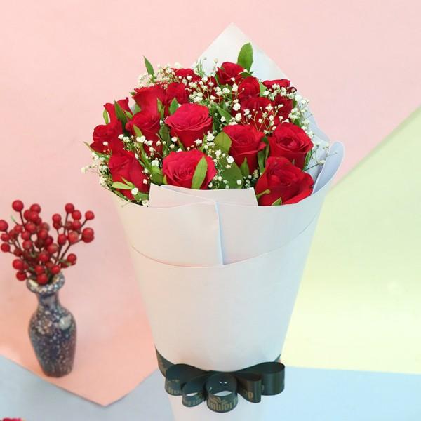Wow your loved ones with a breathtaking Red Flower Bouquet, guaranteed to make an unforgettable first impression. The vibrant red blooms are the epitome of love and passion, making this bouquet the perfect choice for romantic anniversaries, birthdays, Valentine’s Day, or any special occasion. No extra gift is needed when the beauty of these flowers speaks volumes on its own.Simply place your order, and deliver your love in the most captivating way possible. Whether you're expressing deep affection or celebrating a milestone, this stunning red flower arrangement will leave your special someone feeling cherished and adored.