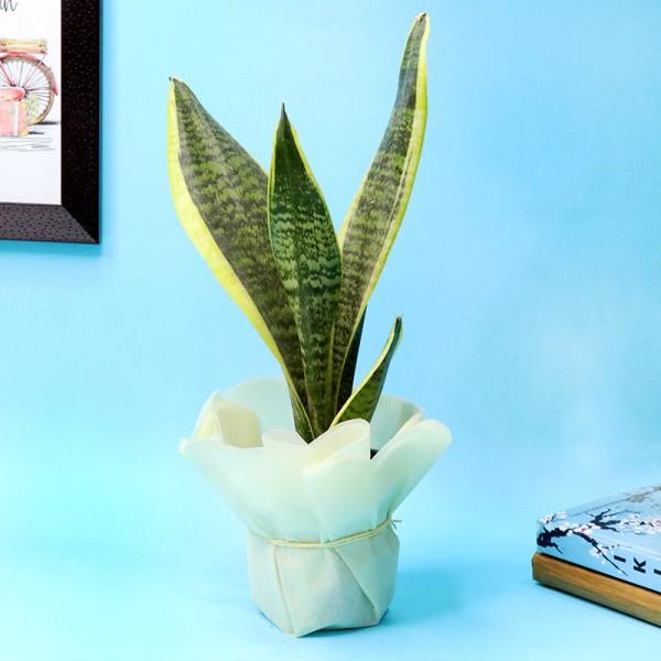 - Sansevieria plant in a Tissue Wrapped Plastic Pot