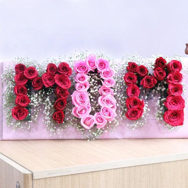Here is a Mom floral arrangement made of red and light pink garden-fresh roses. This aesthetically beautiful Mom shaped rose arrangement is sure to hum your love song into your special one's heart and soul. So, if you want to make someone feel special on her birthday, this will do the trick.