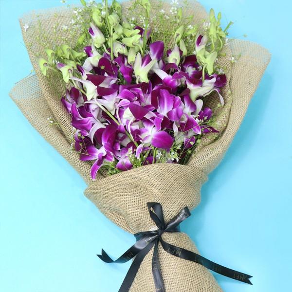 Express appreciation in the most beautiful way with our Graceful Orchid Bunch. Featuring 6 vibrant purple orchids wrapped in rustic jute packing, this bouquet is a perfect blend of sophistication and warmth. Whether it’s to say thank you, celebrate a special day, or simply make someone smile, this charming arrangement delivers your feelings effortlessly.