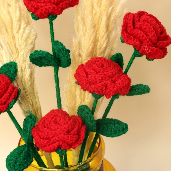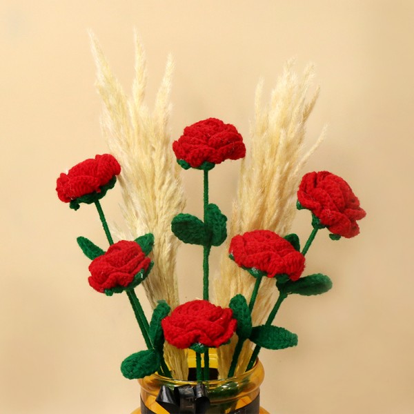 Brighten any room with this cozy crochet flower arrangement, artfully displayed in a decorative vase. Featuring vibrant, handmade blooms, this long-lasting floral piece adds a touch of charm and creativity to your home or office. A sweet gift for any occasion!
