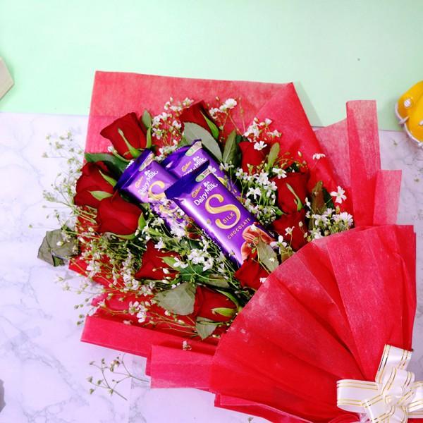If it has to be chocolate, it better be Cadbury Silk, and adding red roses as an addition could be just the right choice to create a chocolate bouquet that will make your partner sway with delight!