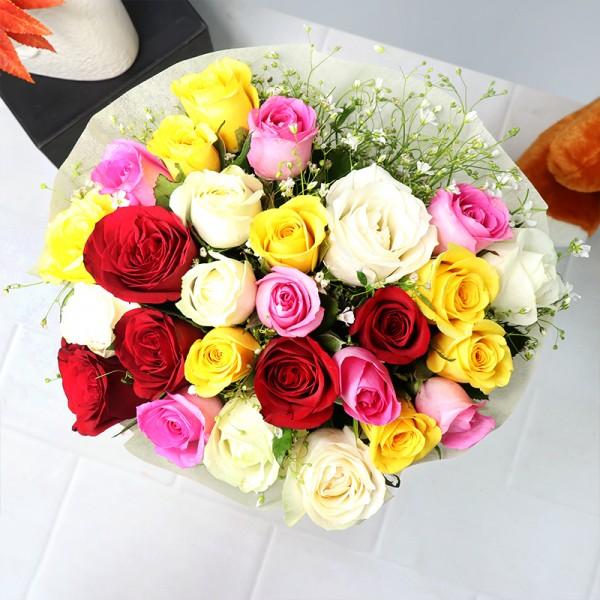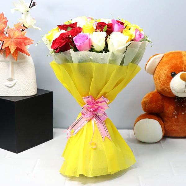 Some people are so special that they make us feel every emotion with just one smile. For such people, we have this thoughtful Bunch of 25 Assorted Roses because one colour is not enough to express how colourful they have made our life.