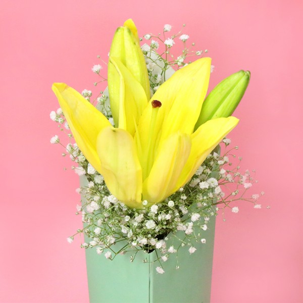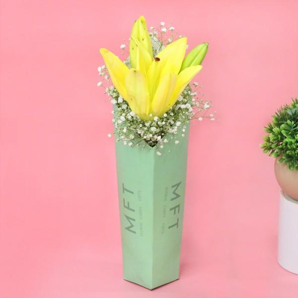Bring warmth and elegance to any occasion with our Golden Radiance Yellow Asiatic Lily Floral Sleeve. Featuring vibrant Yellow Asiatic Lilies, this floral sleeve adds a bold pop of color and a touch of sophistication to weddings, events, or home décor. Known for their stunning beauty and striking hue, Yellow Asiatic Lilies symbolize joy and positivity, making this sleeve the perfect choice for uplifting any space.