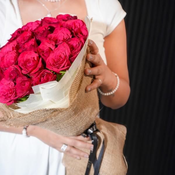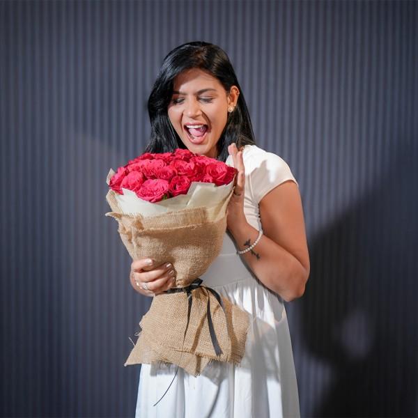 - 20 Red Roses wrapped in Jute Packing and Tissue Packing